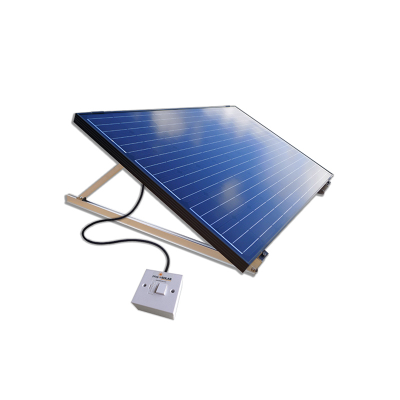 The 250W Plug-In Solar Ground Mount Solar Panel Kit is a complete plug and play solar power solution for your home. Unlike roof mount solar panel kits, these can be placed on any flat surface and plugged directly into a wall socket using the included inverter. That means no expensive surveys or installations on your roof!
