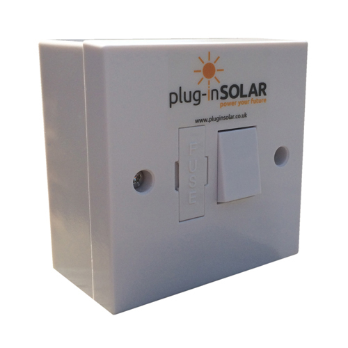 The 750W Plug In Solar Kit includes a Fused Connection Unit, which is used to connect the solar to the mains grid. The solar can be connected as part of a ring main, as a spur from a ring main or on their own radial circuit. The switch ensures the solar can be isolated from the rest of the grid if necessary.