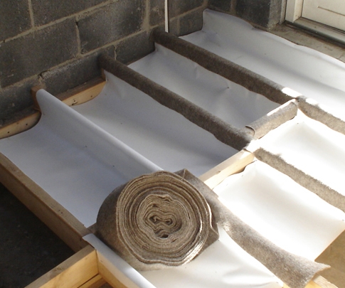 The 3mm thick wool quilt under the floor absorbs the impact of footsteps, resulting in reduced noise transmission to the rooms below. With the use of acoustic insulation strips for your joists, you can decrease structure-borne sound transfer in your building project.