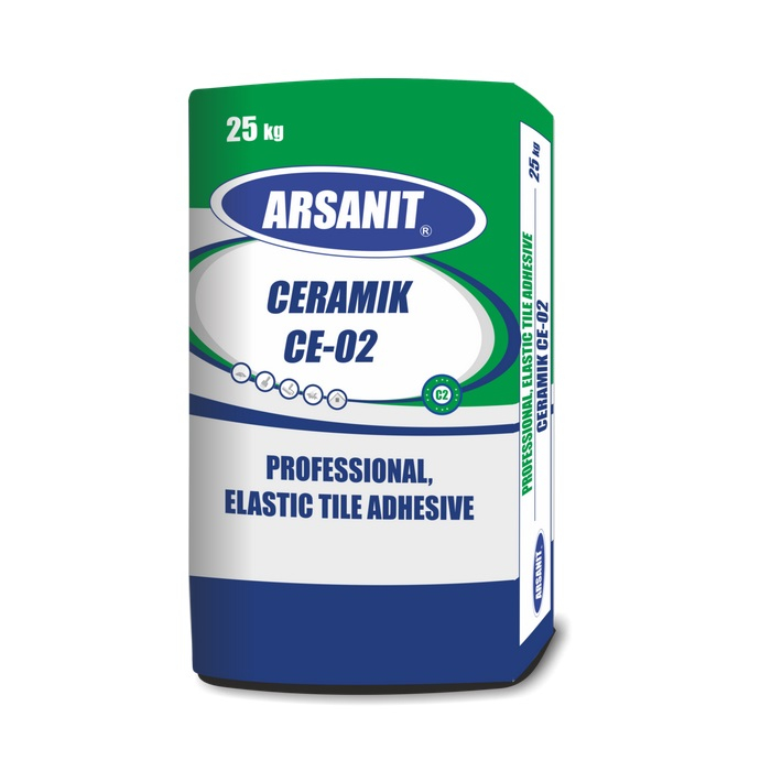 Arsanit Ceramik CE-02 Professional Elastic Tile Adhesive is used for bonding ceramic tiles, stone tiles, terracotta and façade stone tiles to any wet or dry ceramic and concrete substrate.