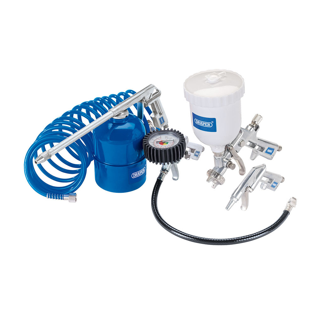 Whether you are a hobbyist or a professional, the Draper Air Tool Kit - Pack of 5 is an essential piece of kit. This multi-purpose kit is suitable for use with receiver compressors, and provides tools for spraying, inflating and cleaning.