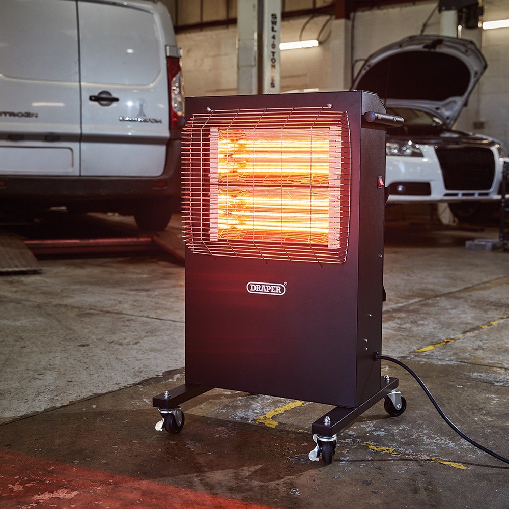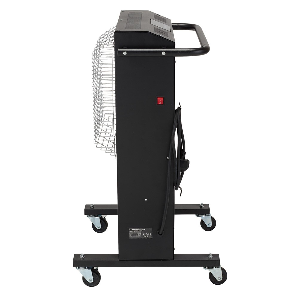Find out moreThis 2.8kW 230V infrared cabinet heater is highly efficient and converts 95% of the input electricity to heat. It is designed for use in commercial and industrial environments and is the ideal solution for large areas such as warehouses and building sites where heating the entire area is either impractical or too expensive. The heater can be used to provide localised heat for staff or processes such as drying walls, paintwork and plaster. The cabinet is manufactured from powder-coated metal, and the heater has twin ruby halogen elements for maximum heat emission and two powerful heat settings. It can be used with one or both elements activated. When the second element is activated, it will automatically switch off once the ambient temperature is reached, with the adjustable thermostat control allowing settings of 15â"45°C. The heater can be programmed to enter standby mode after a set period and comes with a remote control incorporating all the buttons found on the unit interface. The heater has a soft-touch electronic control panel with LED display and a safety tilt cut-out switch. Two of the four multidirectional casters are lockable for additional safety, and the heater comes supplied with a 2m cable and plug.