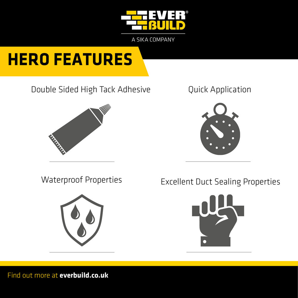 Features & Benefits: Mega All Purpose Duct Tape in Silver from Everbuild - 50mm x 50m Roll