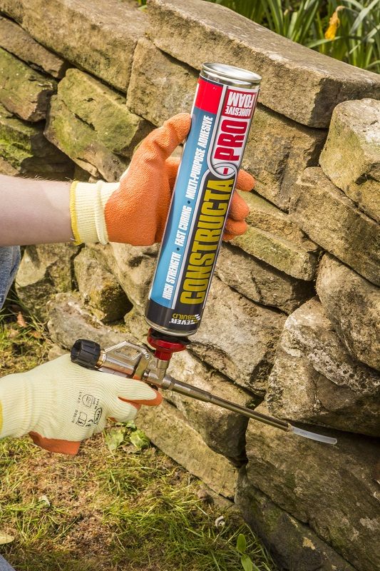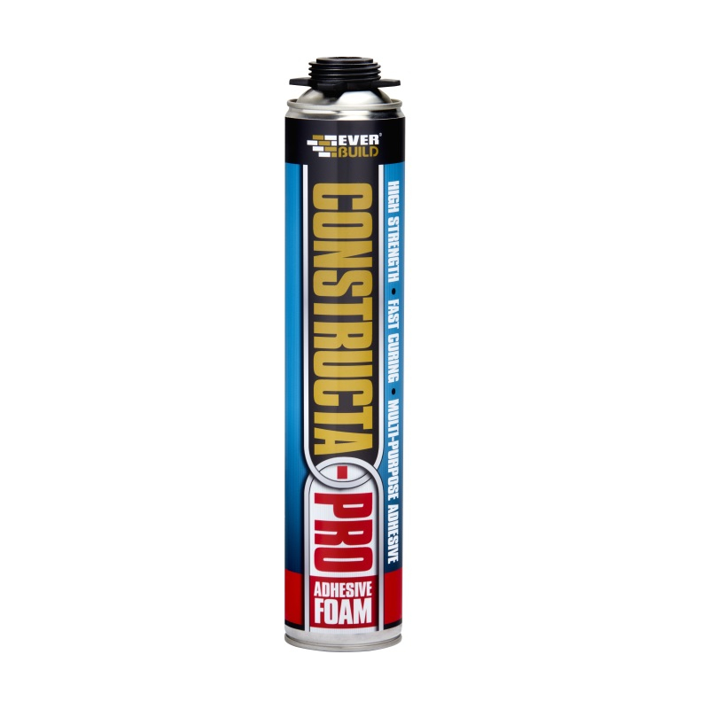 Everbuild Constructa-PRO is a fast curing high strength adhesive foam designed for use in a multitude of building applications. Constructa-Pro adheres well to most common building materials including stone, concrete blocks, brick, wood, plasterboard, insulation board, metal and much more. Once cured, it is also rot-proof, and moisture and temperature resistant from -40°C to +80°C.