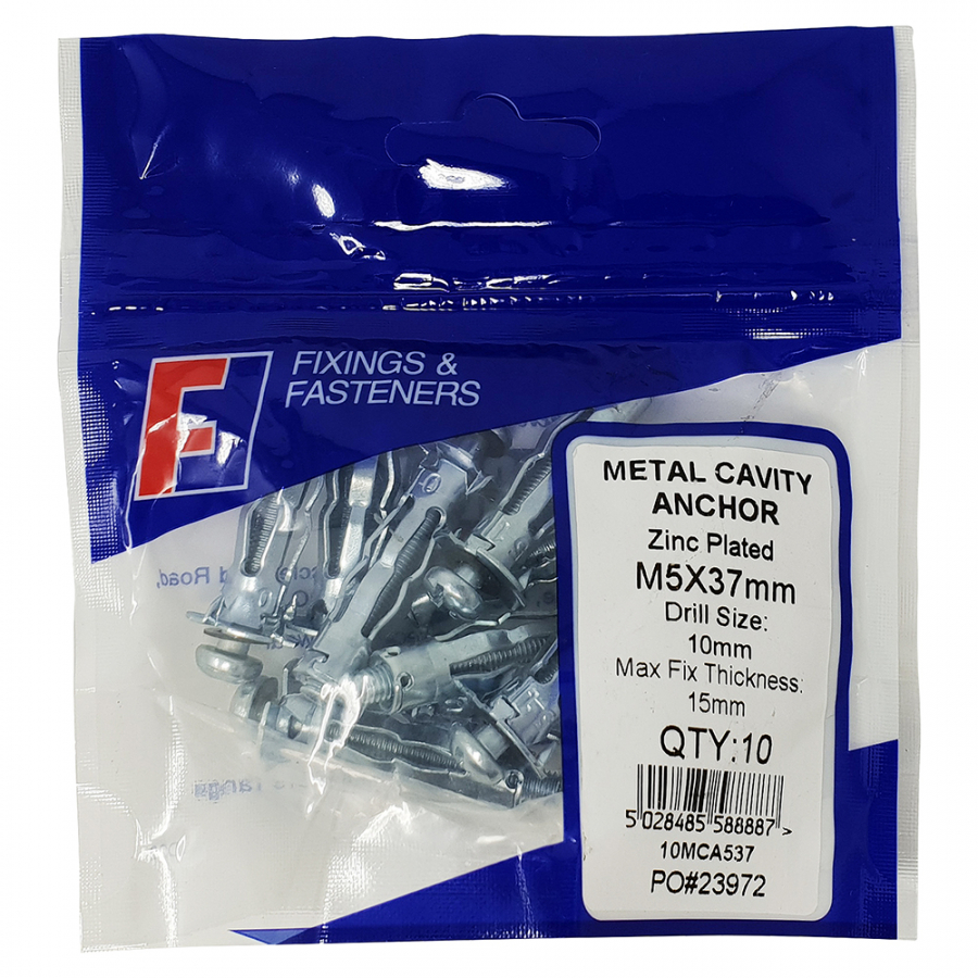 Features & Benefits: Forgefix Zinc Plated Metal Cavity Wall Anchor M6 x 37mm - Pack of 10