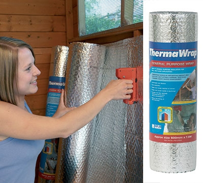 ThermaWrap General Purpose Wrap is a PE bubble membrane with reflective foil surfaces on both sides, offering the same thermal resistance as 55mm Polystyrene. This thermawrap insulation can be used for almost any DIY application including walls, floors, motor homes, dog kennels, rabbit hutches, caravans etc.