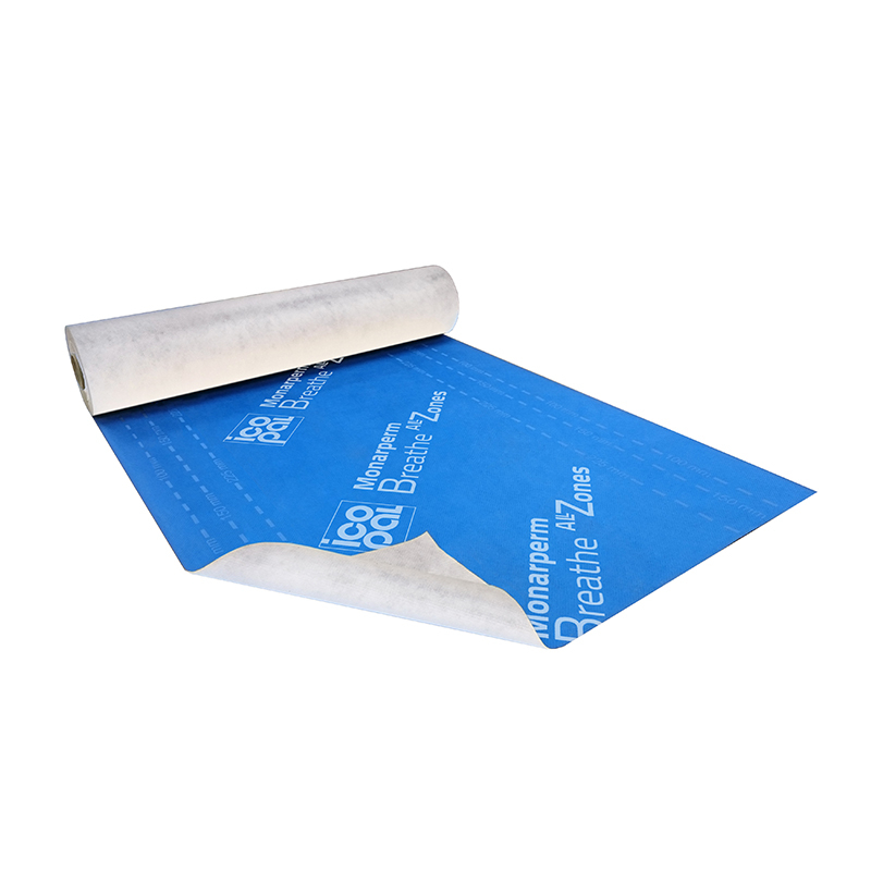 • The Monarperm Breathe by Icopal is manufactured to suit all wind uplift zones. It can also be used as an underlay for discontinuous roofing in pitched and over rafter applications in ventilation and non-ventilated roofs. Monarperm Breathe can also be used as a temporary weatherproofing feature for up to three months before slates and tiles are installed on a roof.