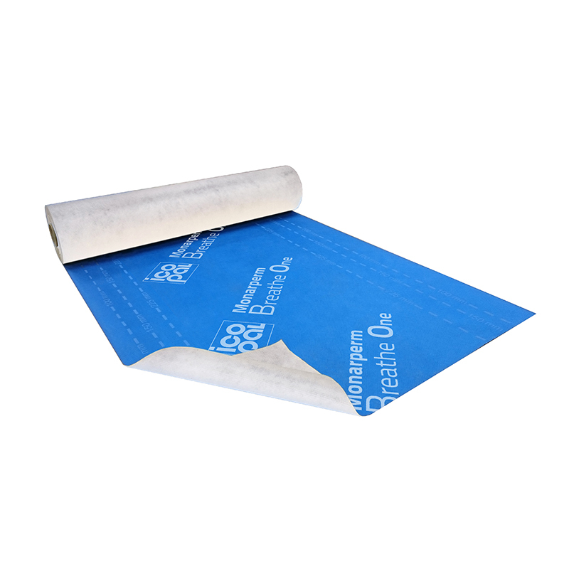 Monarperm Breathe One is a vapour permeable membrane from Icopal. The breather membrane is manufactured from a laminated polymer film layer, sandwiched between two layers of polypropylene fabric. It's blue on the topside and white underneath, coming in at just 0.43mm thick.