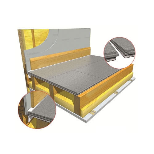 A 15mm resilient acoustic layer laminated to a 22mm t&g cement particle board, designed for fitting direct to joist.
