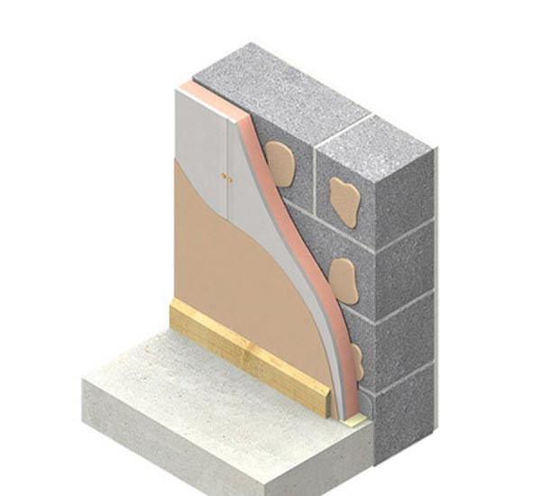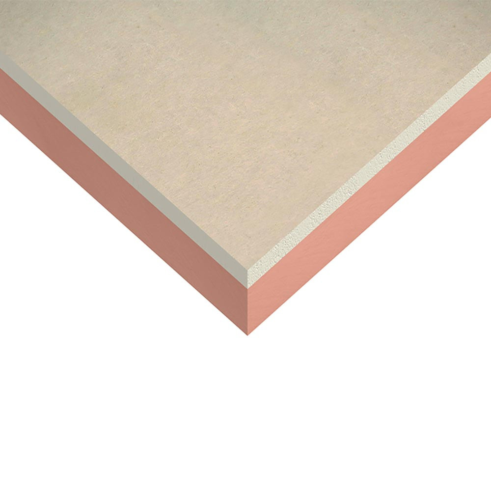 Kingspan Kooltherm K17 Insulated Plasterboard is a premium performance insulation, with a fibre-free rigid thermoset phenolic insulation core with 12.5mm plasterboard bonded to its front surface and a glass tissue based facing on its reverse surface which is used for plaster dab / adhesive bonded dry-lining internal wall insulation.