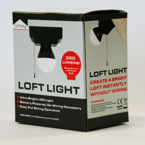 The Loft Light is an ultra-bright, battery powered LED light bulb that illuminates a loft instantly. The Loft Light requires no electoral wiring and can be screwed directly to any timber element in the loft.