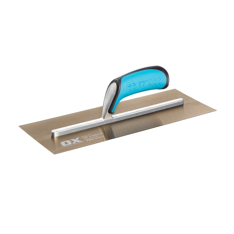 The OX Pro Stainless Steel Plaster Trowel is perfect for scooping/spreading plaster or similar materials.