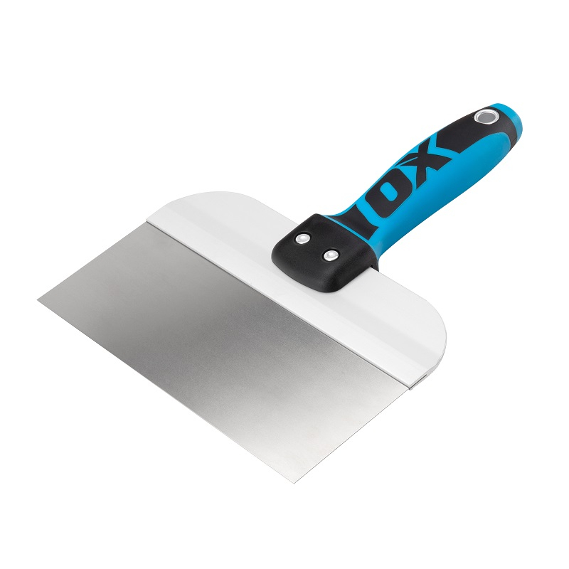 OX Pro Taping Knife ideal for spreading joint compound over nail and screw indents in new drywall applications.