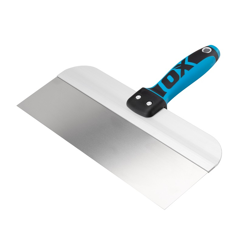 OX Pro Taping Knife ideal for spreading joint compound over nail and screw indents in new drywall applications.