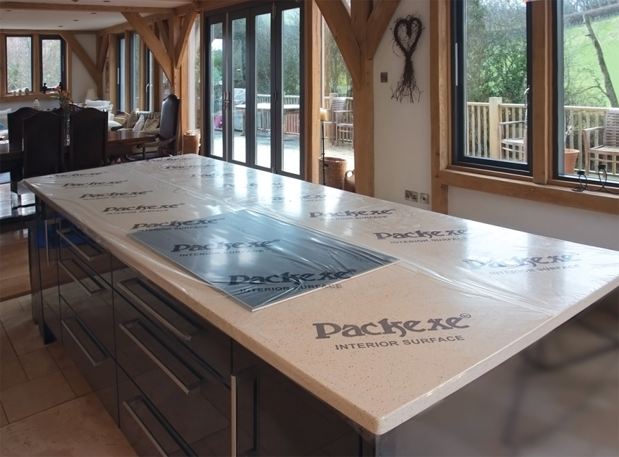 Packexe Interior Surface is a clear temporary protection film that applies over worktops, tiled surfaces and polished surfaces to protect during renovation, construction and refit projects. This temporary interior surface protection film will protect from spills of paint or plaster, and dust, dirt and debris.