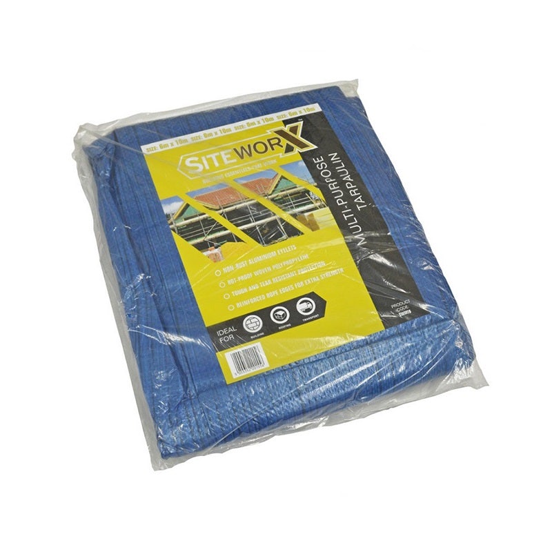 Suited to various applications, these Siteworx multi-purpose tarpaulins are crafted from woven polypropylene fibres, making them highly resistant to ripping and tearing. The inclusion of aluminium eyelets and reinforced rope edges enhances their durability, and they deliver a superior level of workmanship, safety, neatness, and productivity in any site or building project.