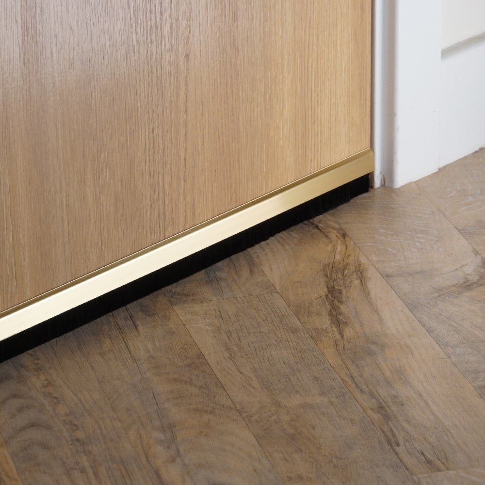 The brush strip has an option of four finishes, including chrome, gold, light oak, and white, and comes with clip-on covers that hide the screws from sight for a neater look. The soft, long brushes glide over any surface, and the 20mm wood screw fixings are accompanied by pre-drilled holes to locate and fix through.