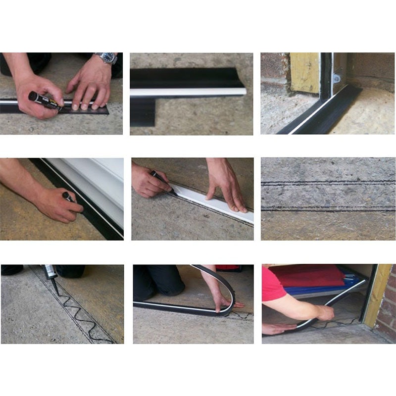 This innovative seal effectively keeps rainwater, draughts, leaves and dust outside, maintaining a clean and dry garage interior. Compatible with various types of garage doors, including up-and-over, hinged and roller, the threshold's shape helps deflect water away from the interior while creating a tight seal against the door.